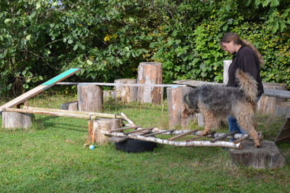 Langsames Klettern über verschiedene Geräte wie Leiter, Wippe, Rutsche, Reifen... Der Parcours wechselt wöchentlich. Das Selbstbewusstsein des Hundes wird gestärkt, sein Körpergefühl immens verbessert. Die Bindung zwischen Hund und Mensch wird intensiviert. Für Hunde jeden Alters und jeder Größe geeignet (der Parcours wird auf die Teilnehmer angepasst).